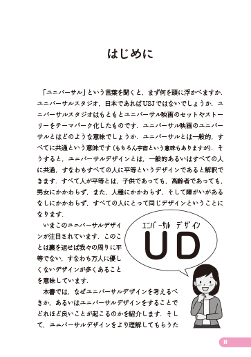 ユニバーサルデザインを専門書ということではなく、企業や教育機関の取り組みを例示し、一般の方にでもわかりやすく説明しました。理解しにくいバリアフリーとユニバーサルデザインとの違いも明白にして、「より多くの人々に利用しやすい商品を設計する」というユニバーサルデザインをより多くの人々に伝わる書籍になればと考えます。