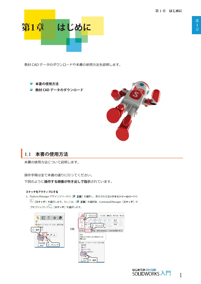 これから3DCADをはじめる機械設計者、教育機関関係者、学生の方を対象にした3DCADシステム「SOLIDWORKS」の入門用テキストです。