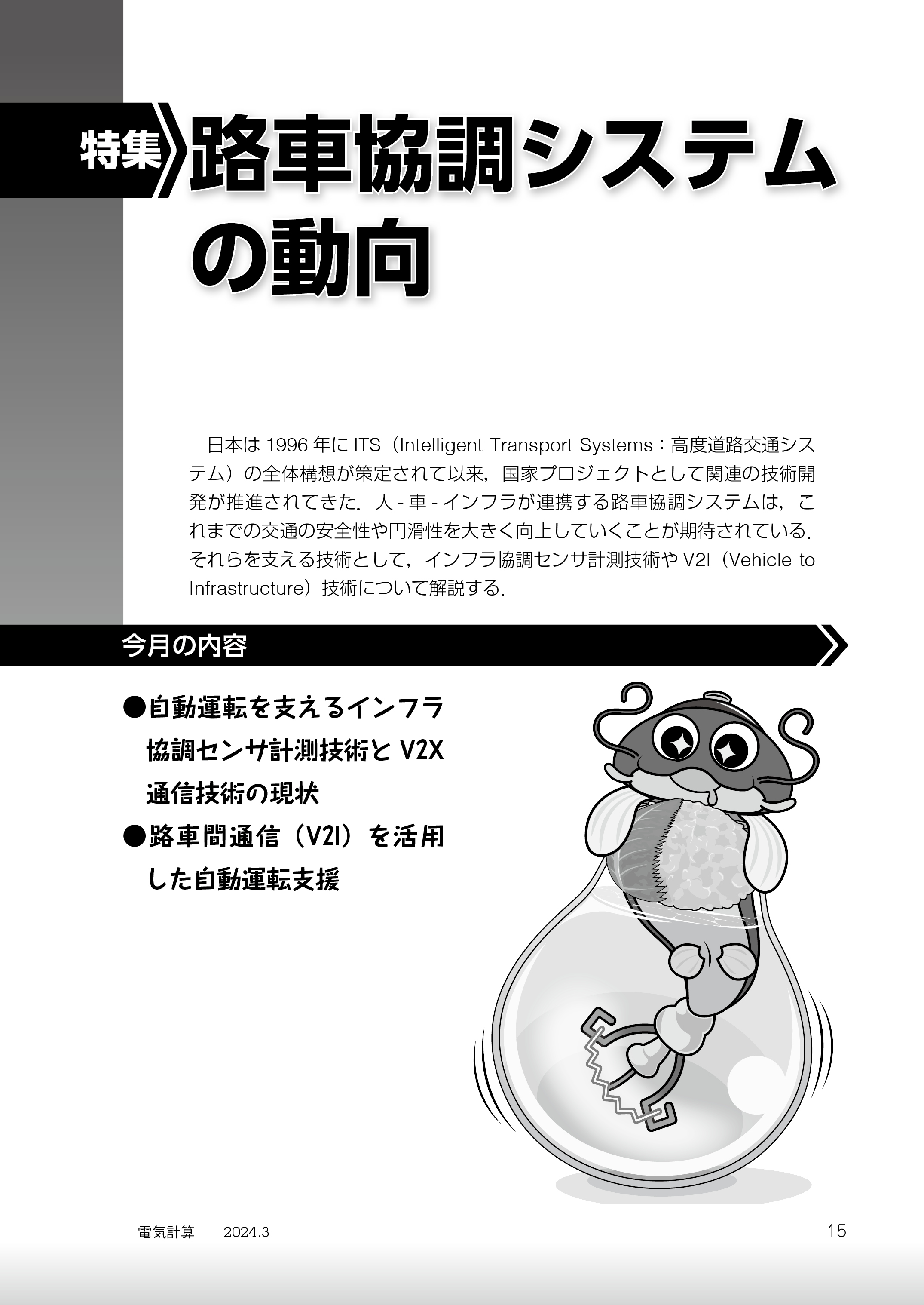 日本は1996年にITS(Intelligent Transport Systems:高度道路交通システム)の全体構想が策定されて以来、国家プロジェクトとして関連の技術開発が推進されてきた。人- 車- インフラが連携する路車協調システムは、これまでの交通の安全性や円滑性を大きく向上していくことが期待されている。